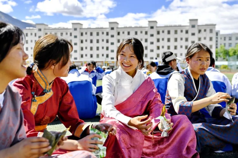 西藏山南市第二高級中學(xué)的學(xué)生品嘗安徽省援藏干部和企業(yè)家代表贈送的粽子(2022年6月3日攝) 張汝鋒攝/本刊