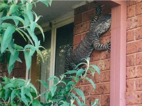 居住在新南威爾士州南部的老人埃里克·霍蘭德說,本周早些時候他在屋內(nèi)看到一只大家伙在院中亂跑,隨后聽到后院一陣聲響,他走出屋后發(fā)現(xiàn)一只長約1.5米的大蜥蜴正趴在他家外墻上,尾巴挨著排水管。