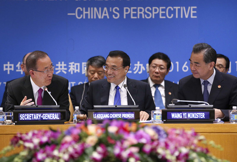 李克強(qiáng)當(dāng)?shù)貢r(shí)間19日在聯(lián)合國主持召開“可持續(xù)發(fā)展目標(biāo):共同努力改造我們的世界——中國主張”座談會,聯(lián)合國秘書長、71屆聯(lián)大主席及16個國際組織負(fù)責(zé)人悉數(shù)出席。潘基文盛贊道:“我很少在一個會場看到這么多國際組織的負(fù)責(zé)人。這充分說明了李克強(qiáng)總理的領(lǐng)導(dǎo)力。”