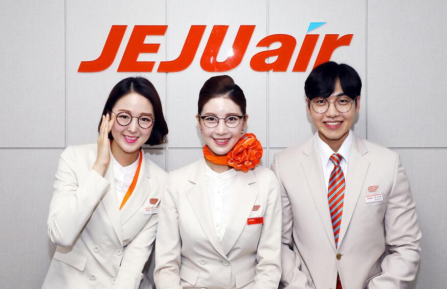 4月24日起,在乘坐韓國濟(jì)州航空時(shí),乘客可以看到佩戴眼鏡的乘務(wù)員。濟(jì)州航空24日開始允許乘務(wù)員在機(jī)艙佩戴眼鏡。