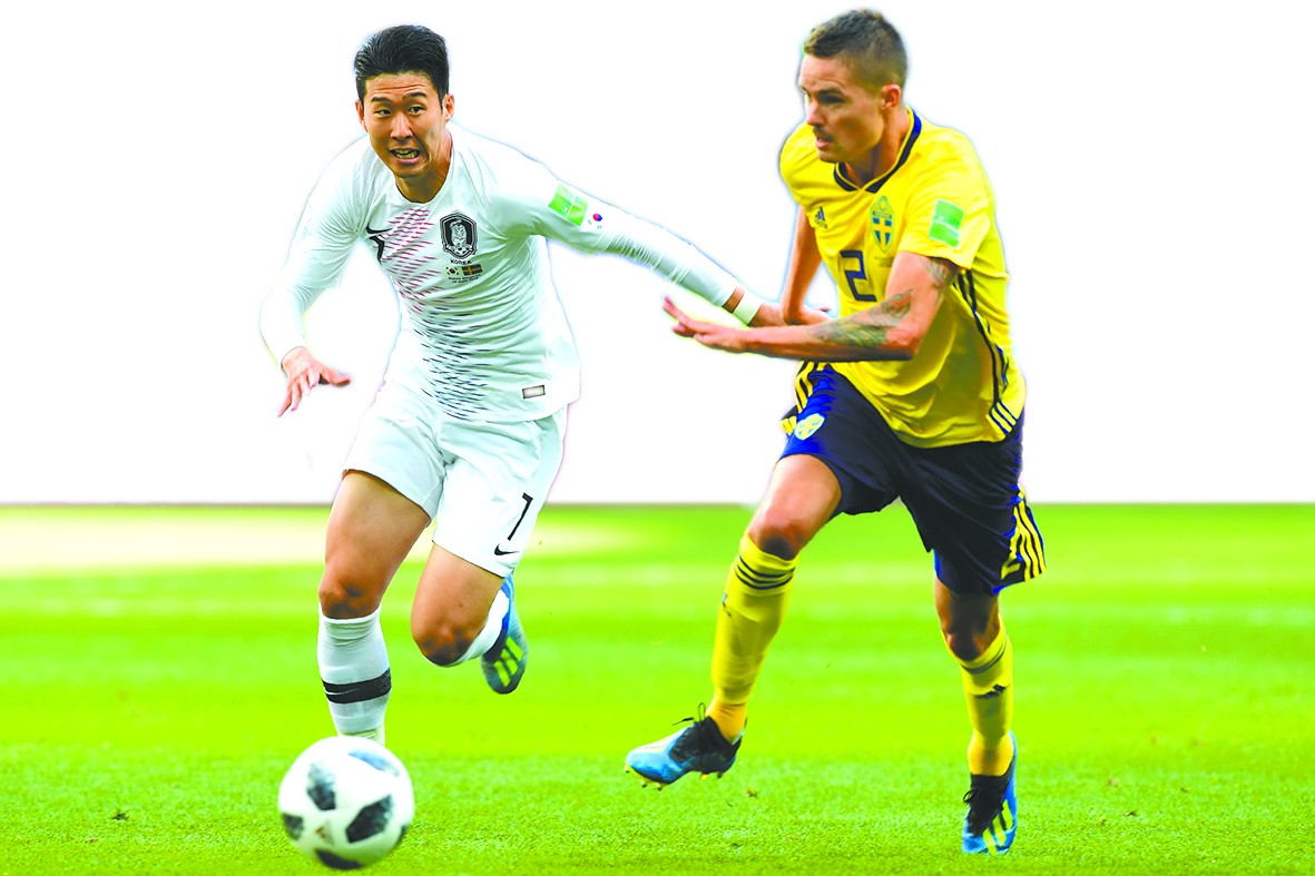為了幫助球隊(duì)贏得比賽,韓國的隊(duì)員和球迷都使出了各自的助力手段。韓國隊(duì)在賽前的訓(xùn)練中放起煙霧彈。據(jù)加拿大“環(huán)球新聞”網(wǎng)17日報道,在與瑞典隊(duì)比賽前,韓國隊(duì)在訓(xùn)練場上故意安排球員穿上打亂號碼的訓(xùn)練服,以此來迷惑前來刺探“軍情”的瑞典球探。主教練申臺龍表示,“這招很管用,因?yàn)槲鞣饺朔直娌怀鰜喼奕说拈L相。”但從比賽的進(jìn)程看,韓國隊(duì)的煙霧彈并未起到預(yù)期的效果。球隊(duì)核心孫興慜(如圖)在下半場遭到對手嚴(yán)密的盯防,未能帶領(lǐng)球隊(duì)扳平比分。