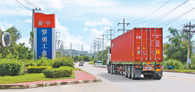 位于泰國“東部經(jīng)濟走廊”核心區(qū)域的泰中羅勇工業(yè)園發(fā)展迅速。圖為一輛貨車進入羅勇工業(yè)園。 本報記者 孫廣勇攝 |
