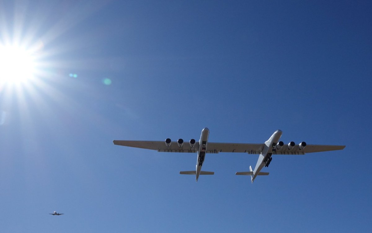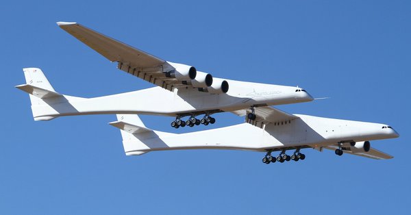 據(jù)美國CNN發(fā)布的消息顯示,美國平流層發(fā)射系統(tǒng)公司研發(fā)的世界上最大的飛機在當?shù)貢r間周六(13日)在加利福尼亞的莫哈韋沙漠進行了首次試飛。此次試飛持續(xù)兩個多小時。該機的首飛成功將蘇聯(lián)制造的安-225重型運輸機從世界最大的飛行器寶座上跑了下來,不過這架飛機尚未量產(chǎn),因此該機仍然不是世界最大的量產(chǎn)飛行器。