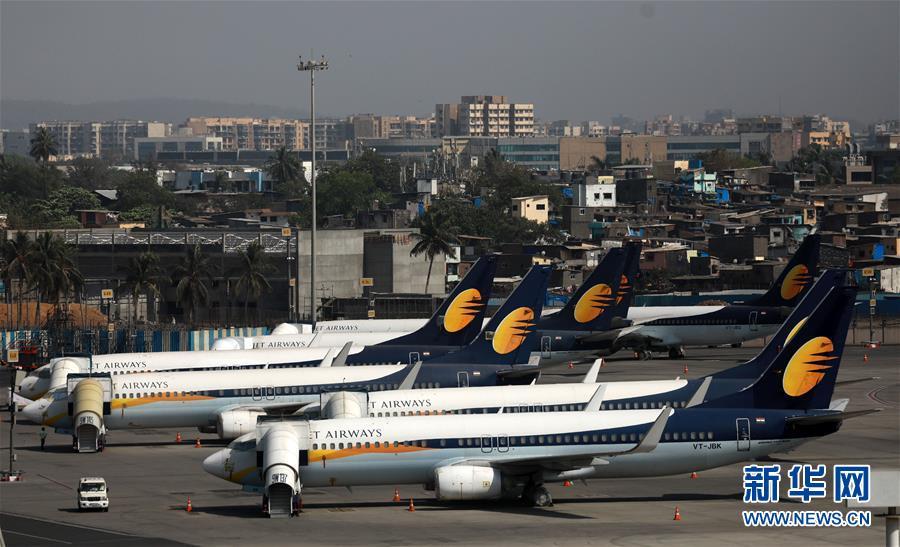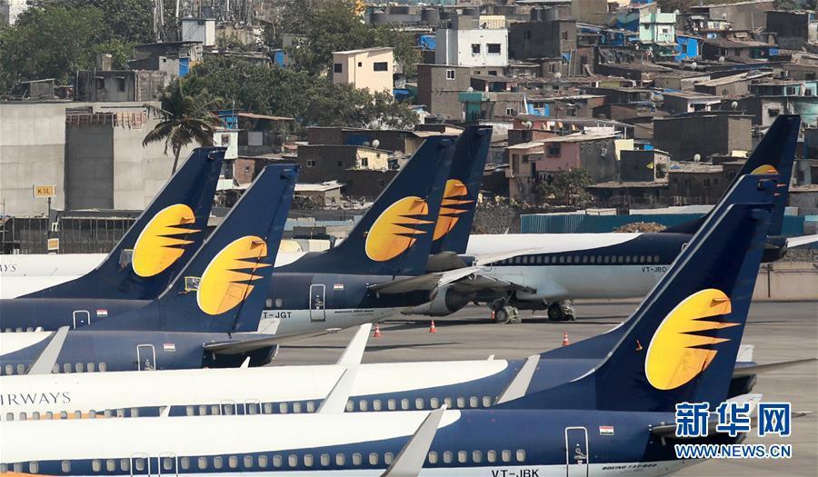 4月18日,在印度孟買,印度捷特航空公司的飛機停在孟買賈特拉帕蒂⋅希瓦吉國際機場的停機坪上。 由于未能按計劃獲得過渡資金,債務(wù)纏身的印度捷特航空公司17日晚宣布,在飛完當(dāng)天最后一趟航班后,其國內(nèi)外航班將全面停飛。