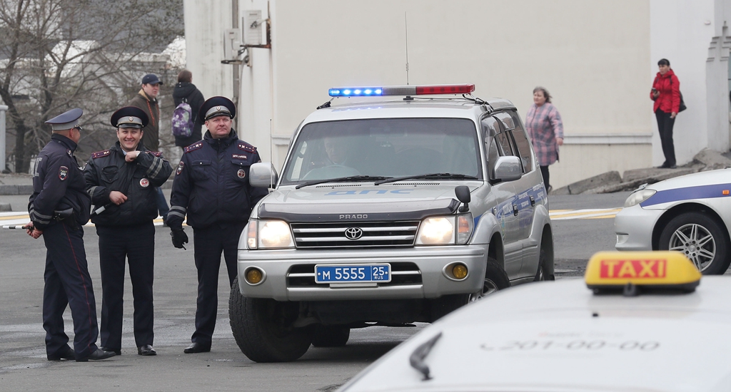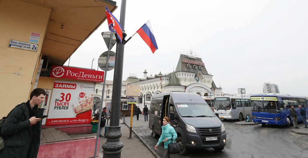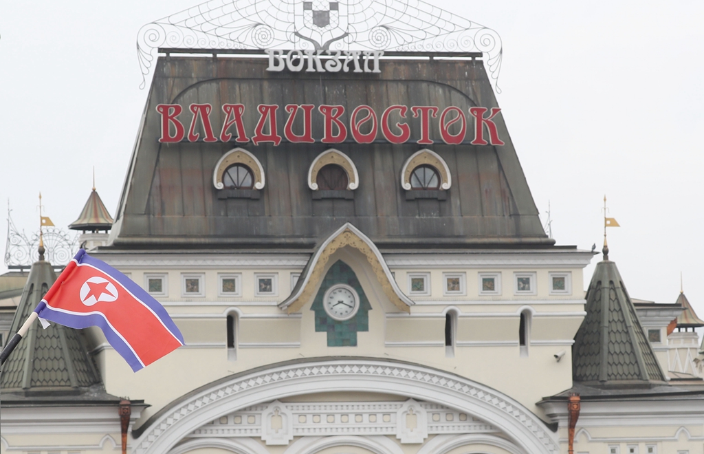 當(dāng)?shù)貢r(shí)間2019年4月24日,俄羅斯符拉迪沃斯托克,符拉迪沃斯托克火車(chē)站外懸掛朝鮮國(guó)旗,當(dāng)?shù)匕踩藛T攜帶警犬加強(qiáng)安保工作。朝鮮中央通訊社今天(4月24日)清晨刊登稱(chēng),朝鮮領(lǐng)導(dǎo)人金正恩已在今日凌晨乘坐專(zhuān)列出訪俄羅斯。據(jù)外媒報(bào)道,金正恩的專(zhuān)列將于當(dāng)?shù)貢r(shí)間今天下午5點(diǎn)左右抵達(dá)符拉迪斯沃斯托克。