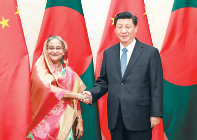 習(xí)近平指出,中國和孟加拉國是傳統(tǒng)友好鄰邦。我2016年對貴國進行國事訪問時,將兩國關(guān)系提升為戰(zhàn)略合作伙伴關(guān)系,推動雙邊交流合作步入快速發(fā)展的新階段,為各自國家經(jīng)濟社會發(fā)展注入了新的動力,也為兩國人民帶來了更多福祉。當前,中孟都處在各自發(fā)展的關(guān)鍵階段。鞏固好、發(fā)展好戰(zhàn)略合作伙伴關(guān)系,不僅符合兩國和兩國人民共同利益,也有利于亞洲繁榮穩(wěn)定和世界開放合作。