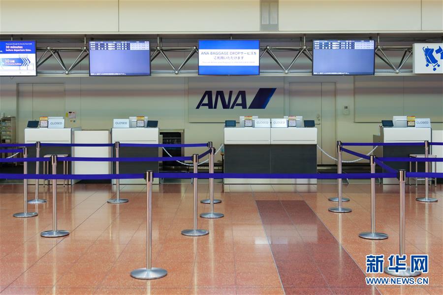 10月12日,在日本東京羽田機(jī)場(chǎng),全日空(ANA)的一個(gè)柜臺(tái)停止辦理業(yè)務(wù)。新華社記者 馬曹冉 攝