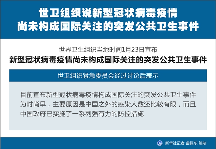 世界衛(wèi)生組織23日宣布,新型冠狀病毒疫情尚未構(gòu)成國(guó)際關(guān)注的突發(fā)公共衛(wèi)生事件。