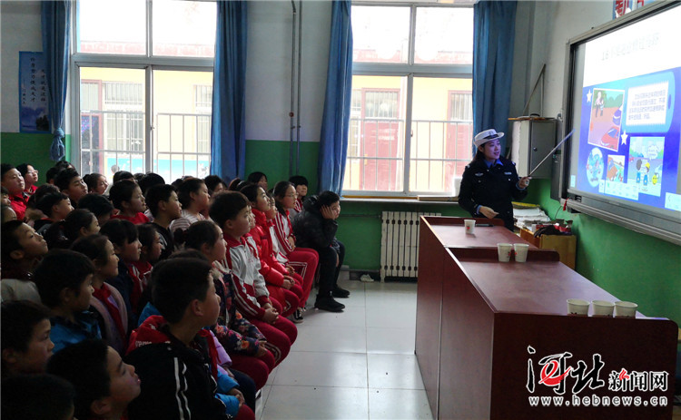 近日,香河縣公安交通警察大隊(duì)開展“為全縣農(nóng)村小學(xué)生上交通安全課”活動(dòng)。圖為香河交警為農(nóng)村學(xué)生講解交通安全知識(shí)。