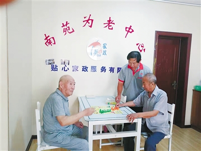 8月6日,位于我市南苑小區(qū)的“南苑為老中心”內(nèi),76歲的李鳳林和84歲的孫發(fā)堂邊聊天邊下棋。照護(hù)人員不離左右,為老人提供貼心服務(wù)。