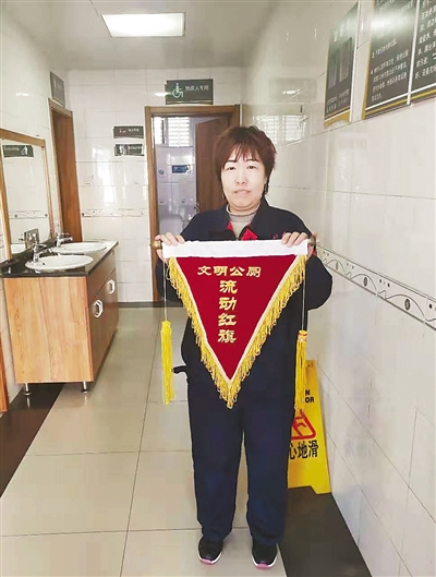 近日,市環(huán)衛(wèi)局城肥處工作人員將最新評選出的“文明公廁”流動紅旗交到了廣匯園公廁管理員孫秀華手上。在第一季度“文明公廁”流動紅旗評比中,十一萬變電站、光明西、廣匯園三座公廁獲此殊榮。