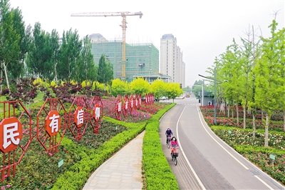 出行便利了,景觀提升了,市民的幸福指數(shù)也提高了。藝術(shù)大道綠化突出惠民理念,兩側(cè)休閑綠道貫穿始終,在道路節(jié)點處設(shè)計街角公園,供市民休憩游玩。