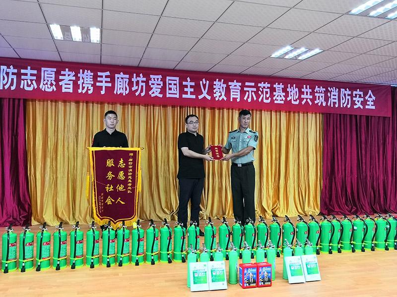 8月1日上午,廊坊市愛國主義教育示范基地舉行廊坊消防志愿者服務(wù)隊捐贈消防器材活動。