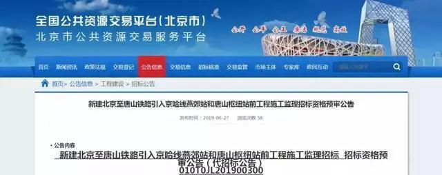 據(jù)北京市公共資源交易服務(wù)平臺公告信息,京唐鐵路計劃工期827天,今年8月底開工,預(yù)計竣工日期為2021年11月30日。這條高鐵其中一個重要站點(diǎn)就在廊坊燕郊!